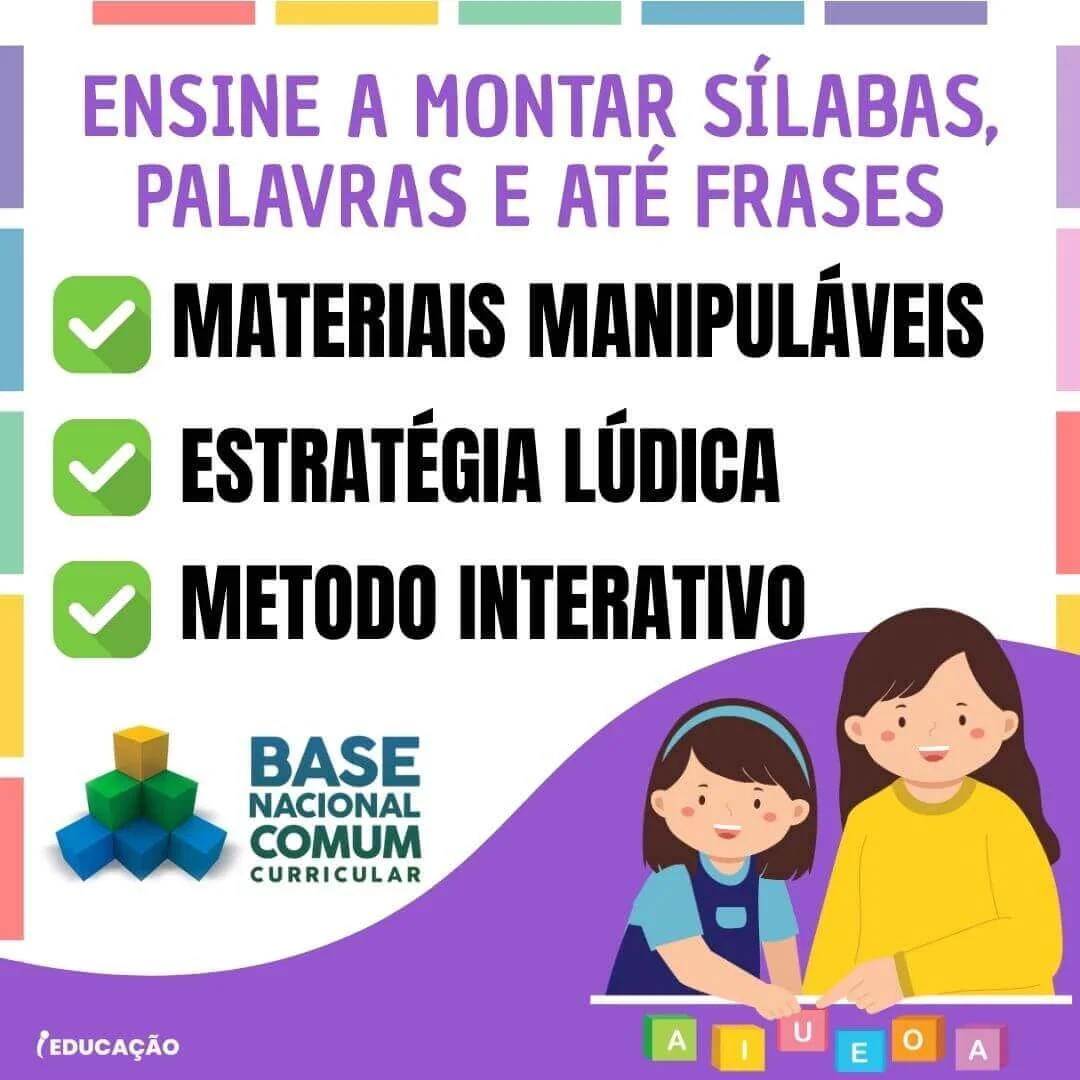 Mas, além do alfabeto móvel, que tal um conjunto de atividades, jogos e mais recursos para alfabetizar? O kit de Alfabetização é comprovado e facilita a aprendizagem da leitura e escrita!