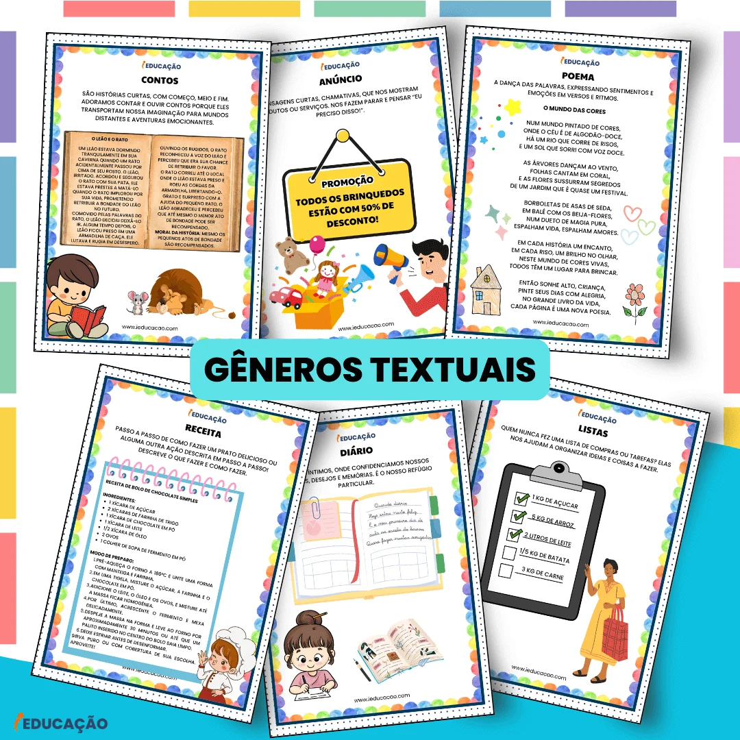 Conteúdos: Letras do alfabeto, vogais, consoantes, primeiras sílabas, onomatopeias, palavras, frases, textos, ortografia, ditados, gêneros textuais, caligrafia, silabários, jogos pedagógicos e muito mais…